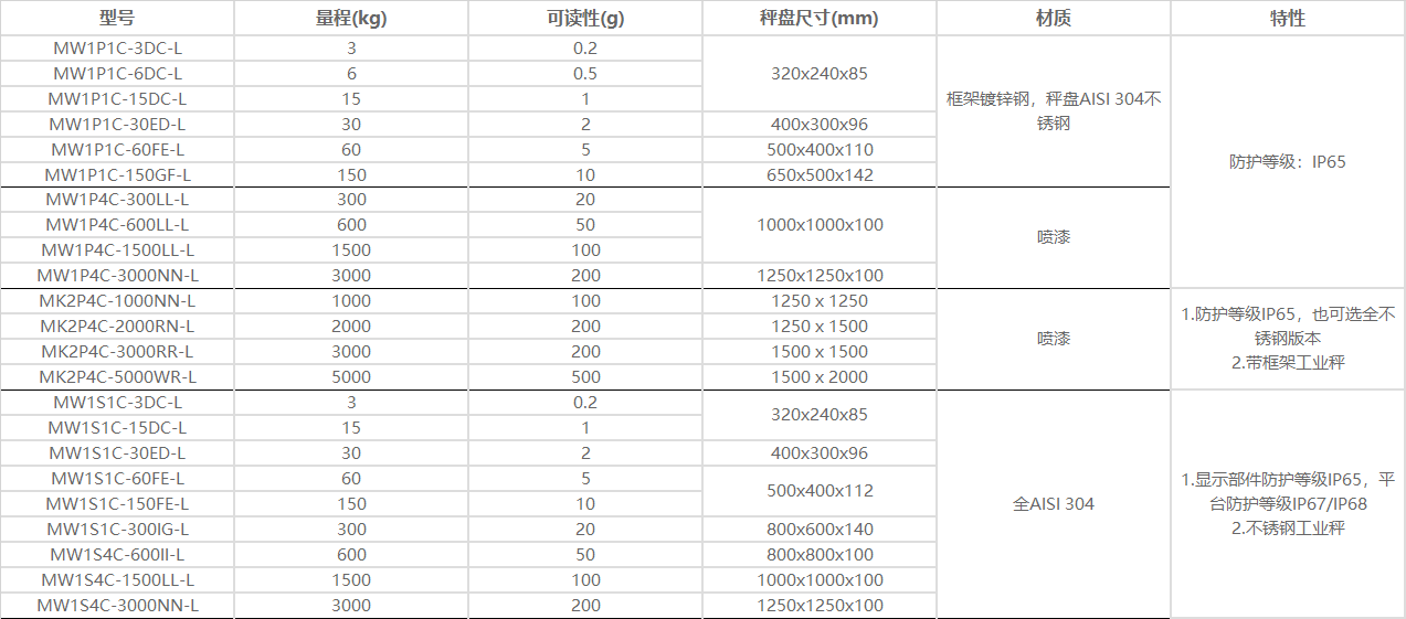 3、 Range 3kg to 5t, readability 0.2 to 200g.