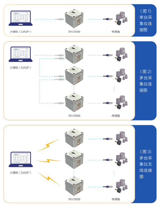 INV3068 adopts a stacked structure and modular design. The number of single acquisition modules can be 1-8, and each acquisition module can have 2-4 channels. The collection module includes stress and strain testing module, multifunctional module, and fully functional testing module.